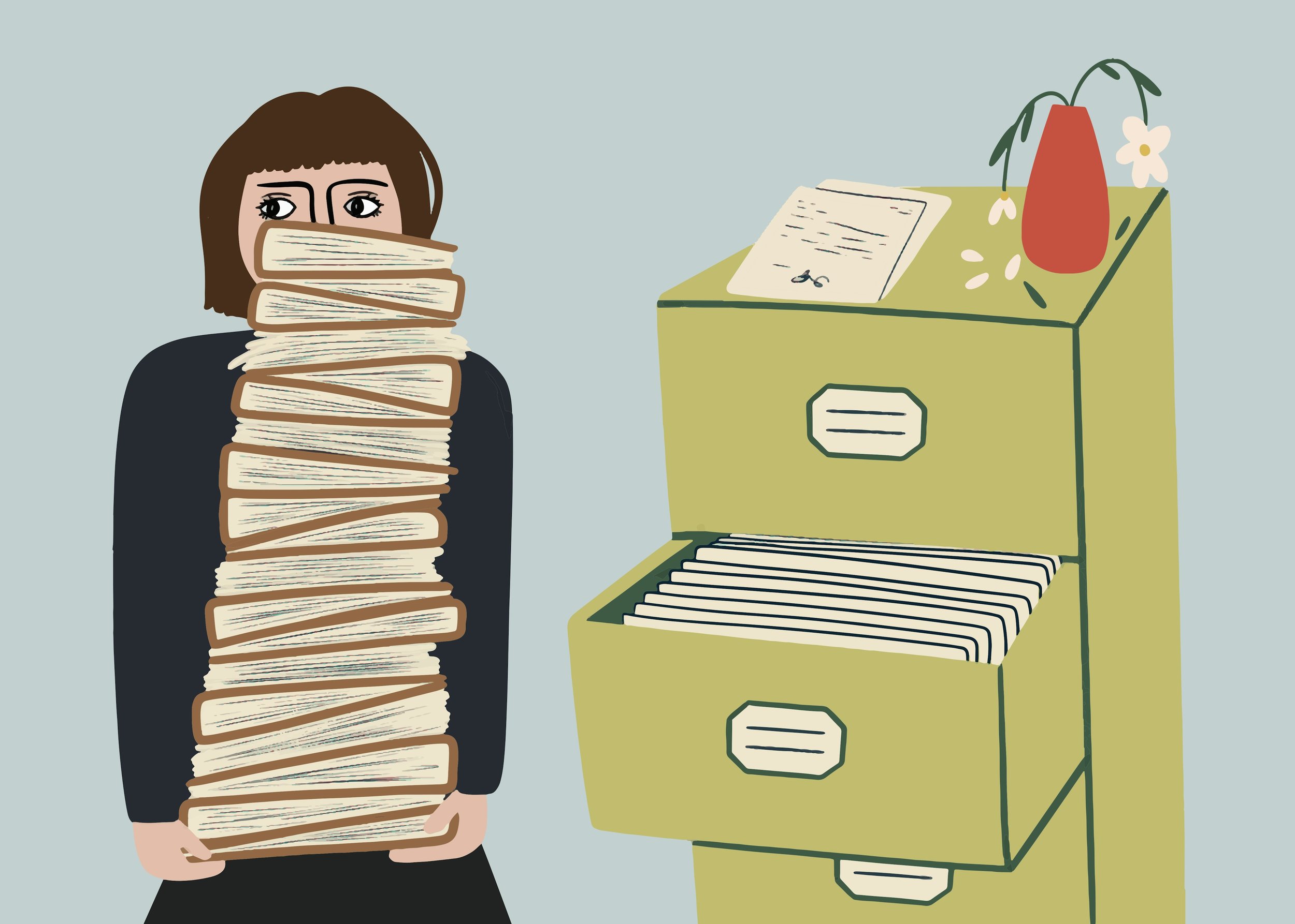 I pull up my 40-denier tights. Press the thighs in. Inconsequential undulations. I never wanted to be an administration assistant but I’m good at it, so it happened. I create order out of chaos. Turn piles of too many things into piles of no things. Somebody presents me with a problem, leaves me with it, then comes back the next day asking for the solution, the report, the progress. But I say, no, there is nothing, it has all gone away. I create space where there once was clutter. The blue pens and the black pens are kept in separate clusters in the very last ceramic mug ever to be seen in this organisation, at the side of my desk. I delete emails when I am short of time. When a day looks set to end I make sure it is all concluded. Colleague Clean Slate, that’s what they should call me. Colleague Giving It Everything. Colleague All Gone Away.